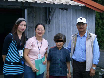 Mrs. Yang was a lady in her forties whose husband had died nearly five years previous. She lived in a public house with her daughter and fourteen year-old, mentally retarded son. Mrs. Yang herself was also in an unhealthy condition and had to take cardiac medicine regularly. She cried every time she mentioned the difficult circumstances of her life at present. Furthermore, the house might be reclaimed at any moment. She worried that if it really happened they would have no place to live.