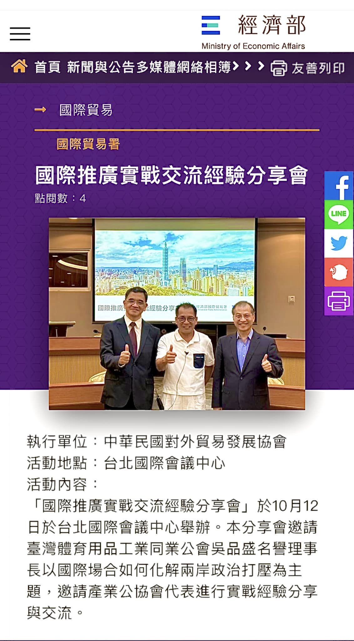 The International Practical Exchange and Experience Sharing Conference was held on October 12 at the Taiwan External Trade Development Council (TAITRA). Dr. George Wood, Honorary Chairman of TSMA, has been specially invited to speak on the topic of "How to Navigate Political Pressure Across the Taiwan Strait on the International Stage." Representatives from industry associations will also be invited to share and exchange practical experiences.