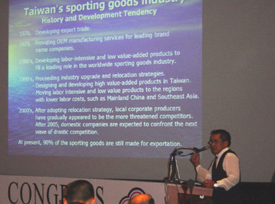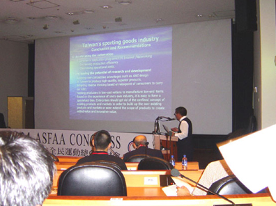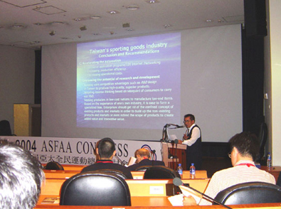In 2004 the 8th ASSFAA Congress with the subject of “Sport for All, Sport Forever”, Mr. George Wood, as the representative of TSMA (Taiwan Sporting Goods Manufacturers Association) was invited by the Chinese Taipei Olympic committee to address the lecture. Mr. Wood set the topic as “Taiwan’s Sporting Goods Industry Analysis” to share his operational experience with those participants who are the scholars and specialists from the Asiania area