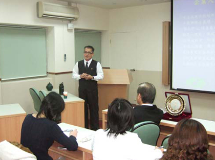 As part of a series of lectures, Dr. George Wood once again was invited by Dr. Chen, a respected scholar in Taiwan academic circles to address a lecture to EMBA students in Chihlee Institute of Technology. In addition to sharing his experiences in business operation, Dr. George Wood emphasized his point on career and life planning for paving a successful way to these students.