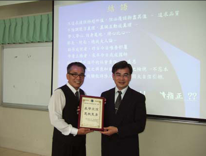 National Chiayi University located in the south part of Taiwan. Even though it is more than 3 hours away from Taipei by car, Dr. George Wood still enthusiastically accepted the invitation and directed the speech towards the students of business administration department. He hoped that his lecture could inspire and encourage them.