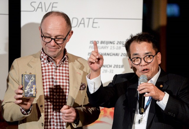 On Feb. 4th, at the official banquet where more than 200 brand companies attend, Dr. George Wood was the only guest invited to stand on the stage and presented AROFLY- an Innovative, Revolutionary, and Killer-class Brand to Mr. Frank Dassler, the WFSGI President who steps down soon.