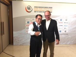 Description: The 4th edition of the WFSGI Manufacturers Forum 2016 was held in Taichung/Taiwan on November 15-16. A record-breaking 205 delegates from 20 countries studied the multi-faceted transformation brought about by digitalization, innovation and robotics, over two days of fast-paced and captivating presentations. Dr. George Wood presents as the Honorary of TSMA, Host of the Forum, to welcome all the participants. In the speech of “How do the best Companies take advantage from the best technology”, the speaker, Prof. Dr. Steve Evans - University of Cambridge, specially took the Arofly as example of best technology product to address his speech and shared it with all the participants.